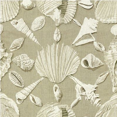 Imprimé sur lin de la collection Les Tropiques, Via Costeira représente un dessin de coquillages délicats.