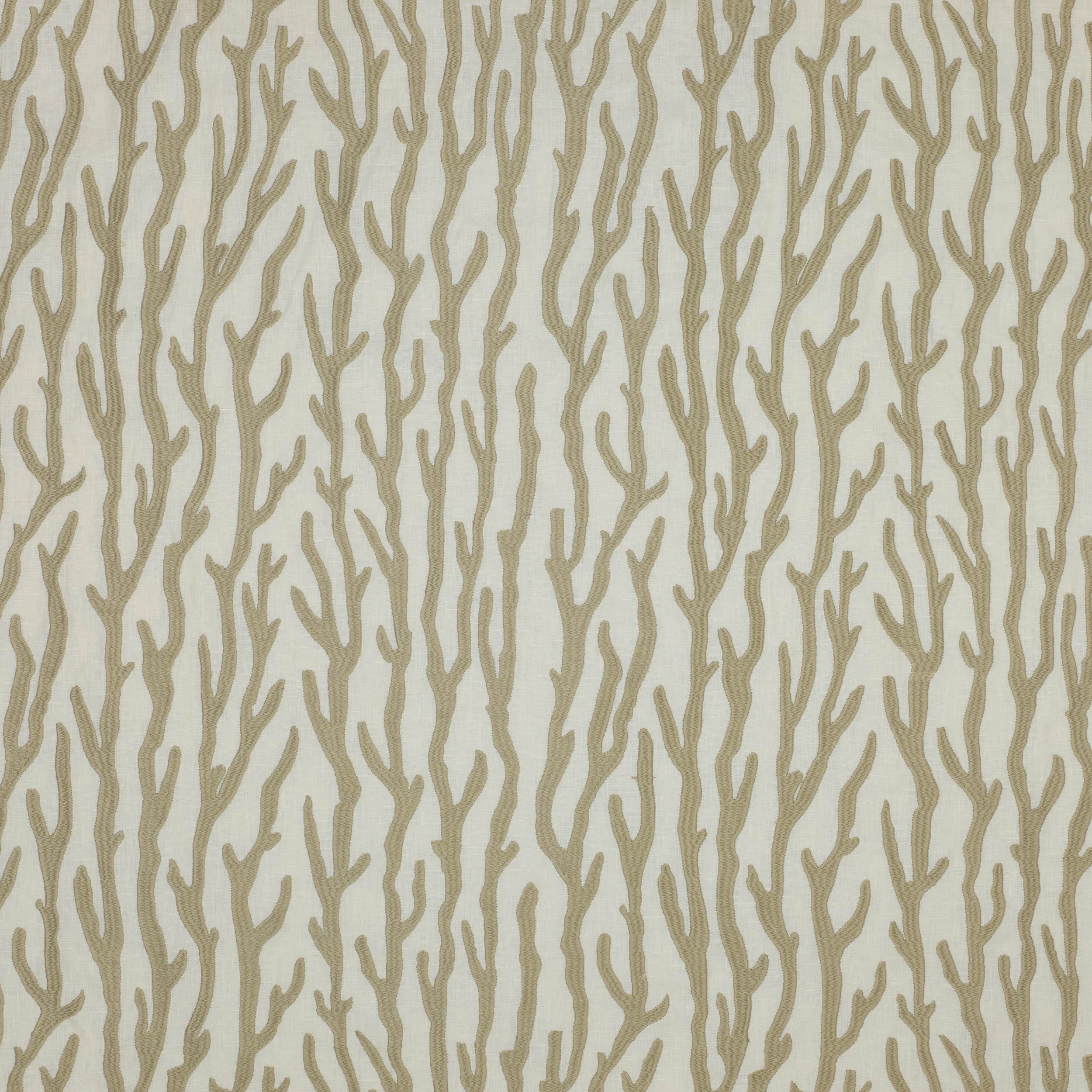 Branches de corail stylisées brodées sur un lin de poids moyen.