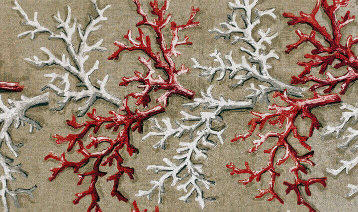 Spectaculaires branches de corail, imprimées sur lin avec des réhauts blancs. Intemporel, ce dessin fait partie des dessins emblématiques de la Maison.