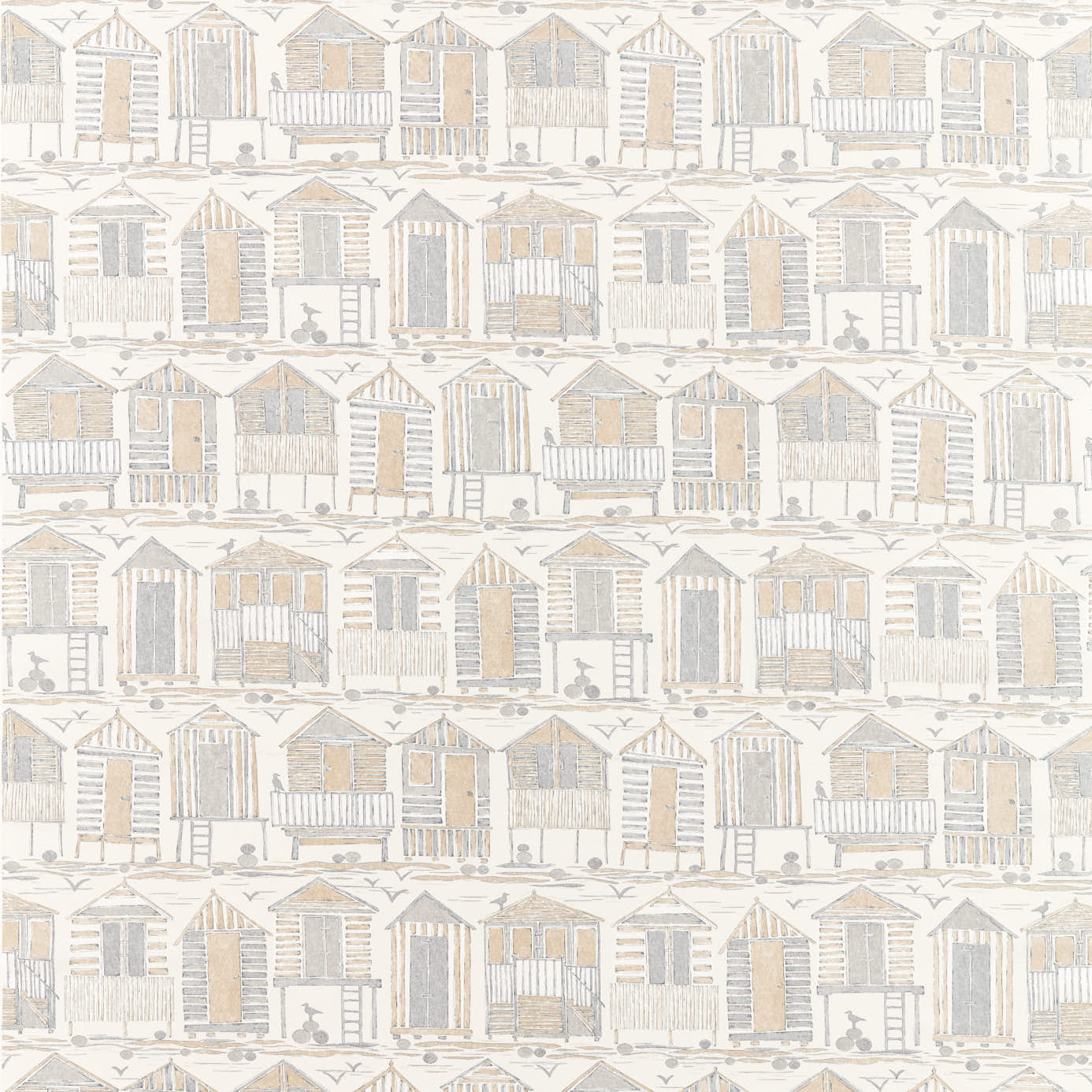 Ce tissu en coton mélangé, représente des cabanes de plage emblématiques dans toutes leurs formes et tailles, rappelant des jours d’enfance passés au bord de la mer britannique.