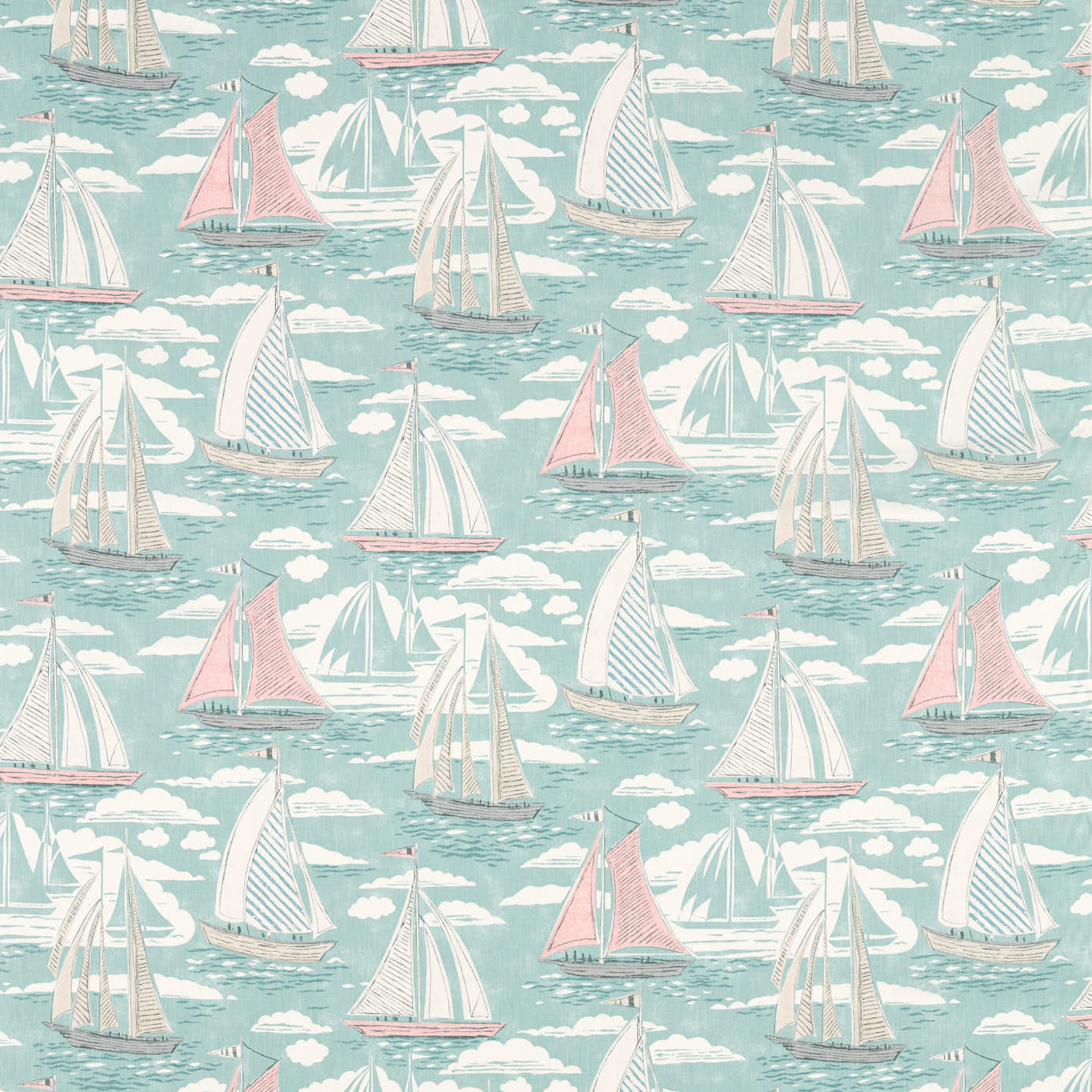 Cet imprimé est inspiré les voiliers de Cornouailles rentrant au port pittoresque de Port Isaac. il représente des croquis stylisés des bateaux flottant sur une mer ondoyante entrecoupée de nuages délicats.
