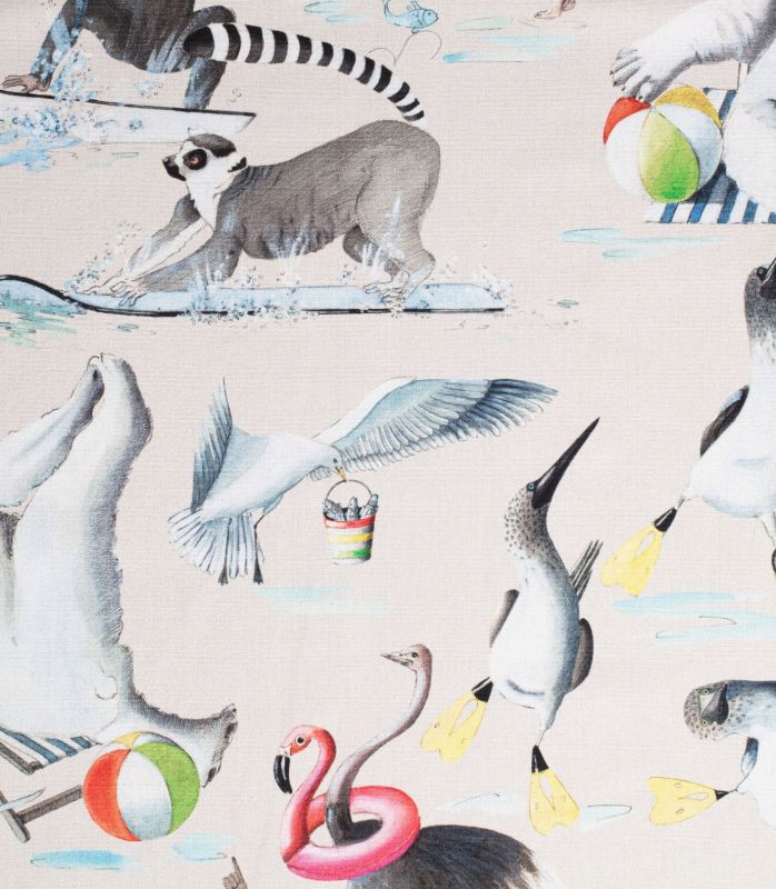 Pour célébrer la belle saison, la cocasse troupe animalière de notre série « Tous… » se retrouve à la plage ! Palmes, bouées, ballons et chaises longues sont en disposition de ces amis friands de divertissement. Les mouettes ne manquent pas d’utiliser le petit seau pour ramener quelques poissons en guise de goûter ! Un imprimé sur coton à sa place dans les maisons de vacances comme dans les chambres d’enfants qui sauront apprécier son côté narratif. 2313602