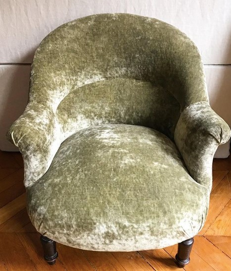Antoine d’Albiousse washed velvet vert de gris : Superbe Velours délavé et lavable qui présente un rendu exceptionnel d’étoffe patinée par le temps!